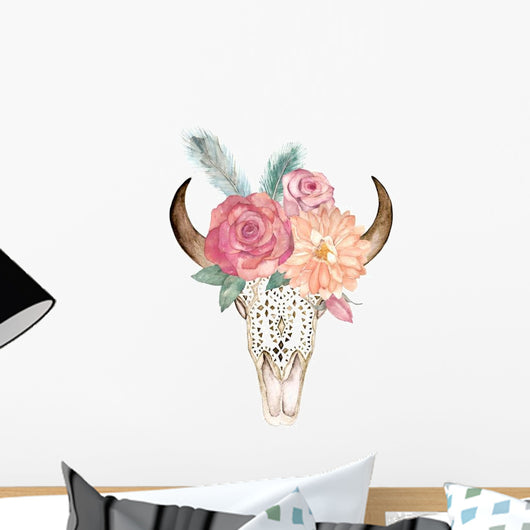 Boho Floral Bull Skull Wall Decal