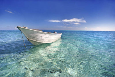 White Boat Floating Turquoise Wall Mural