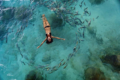 School Fish Encircling Woman Wall Mural