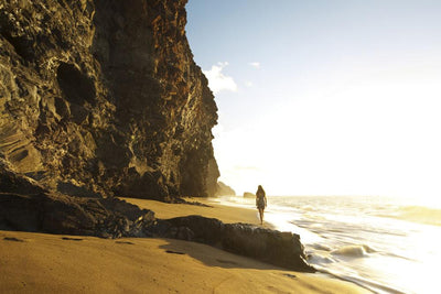 Woman Walking along Shoreline Wall Mural