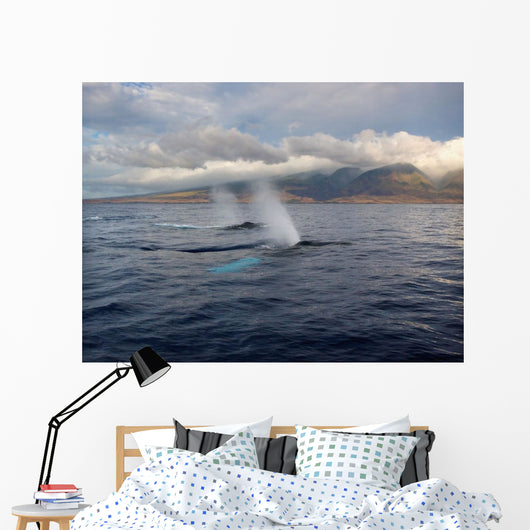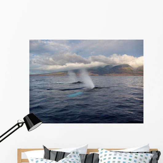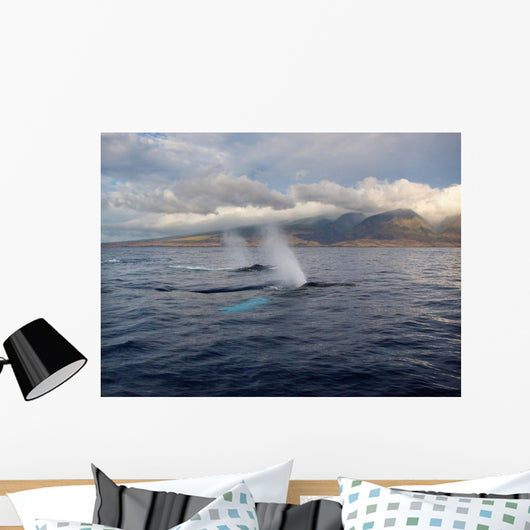 Hawaii, Maui, The Spout Of Two Humpback Whales Wall Mural