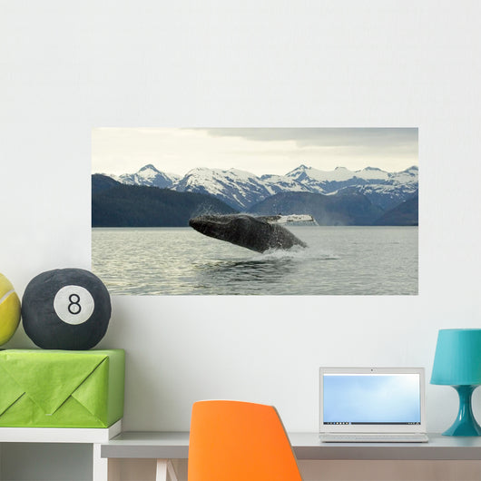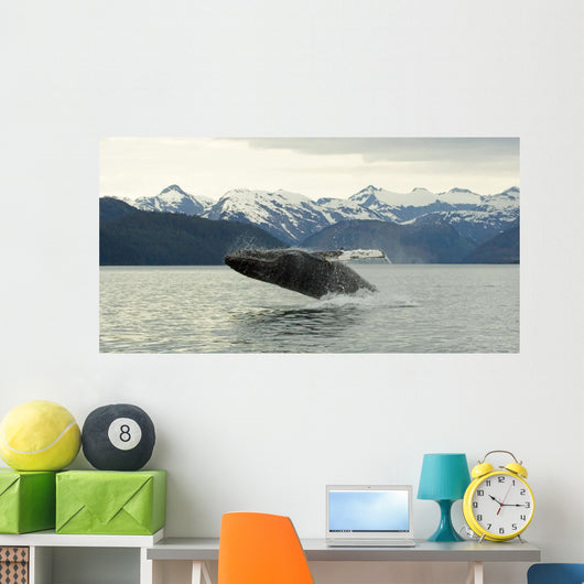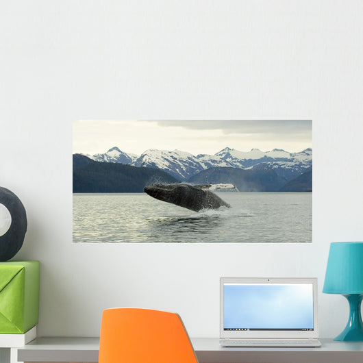 Humpback Whale Breaches near Wall Mural