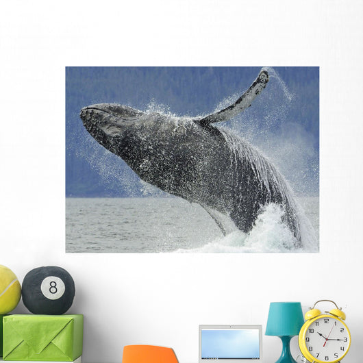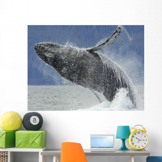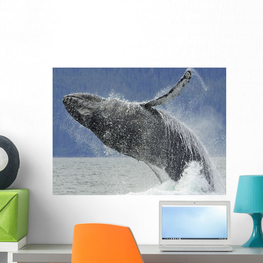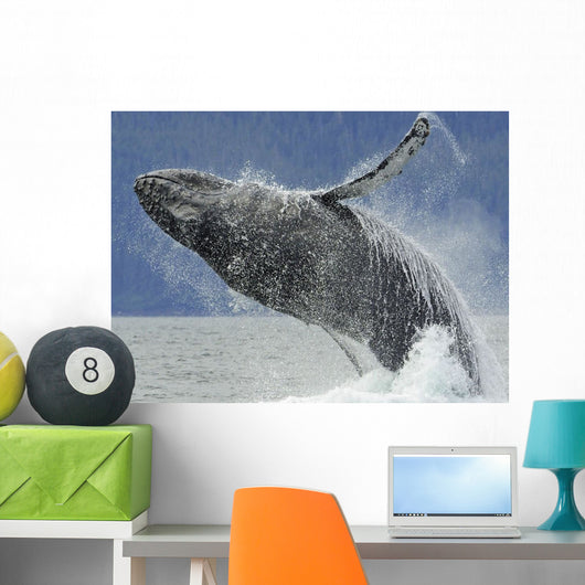 Humpback Whale Breaching near Wall Mural