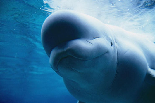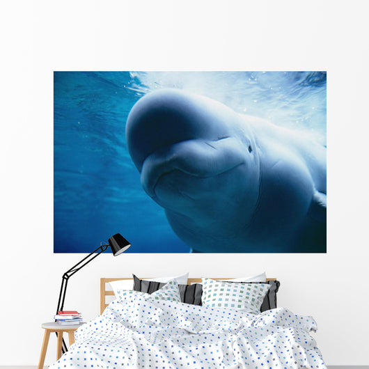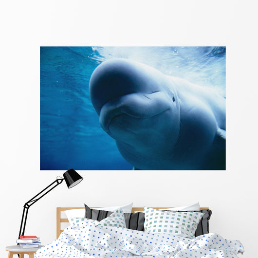 Underwater Close Up View Of A Captive Beluga Whale Swimming Wall Mural