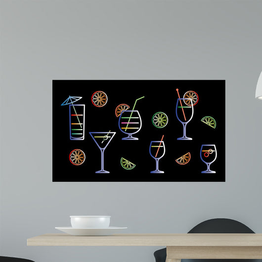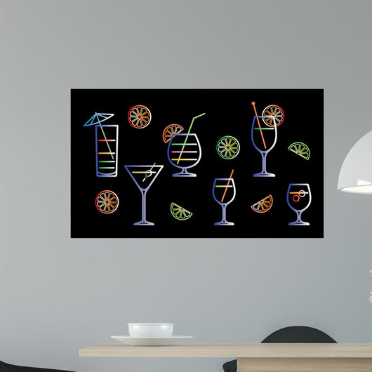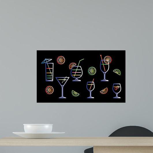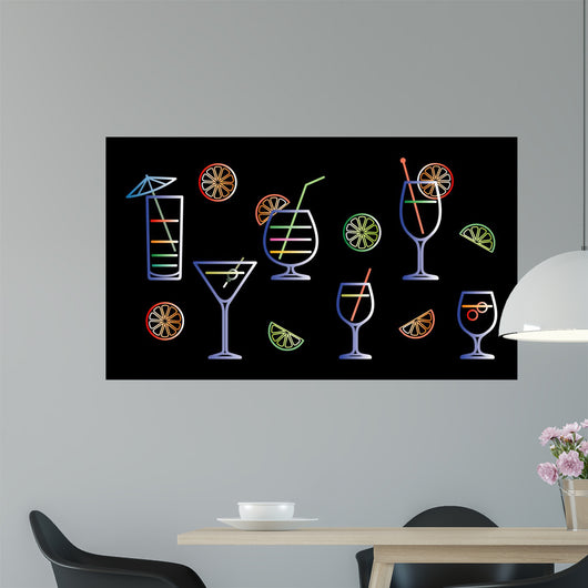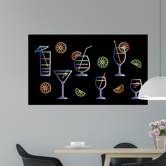 Neon Cocktails Vector Illustration Wall Decal
