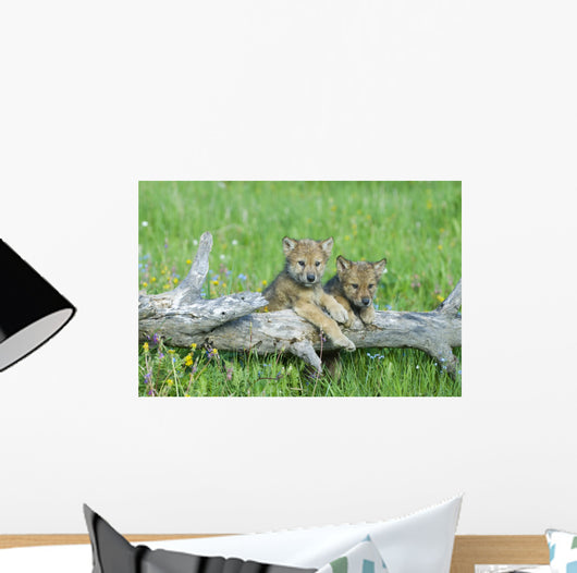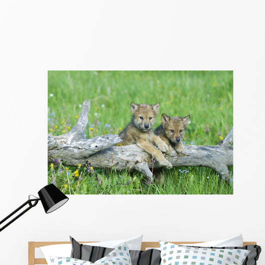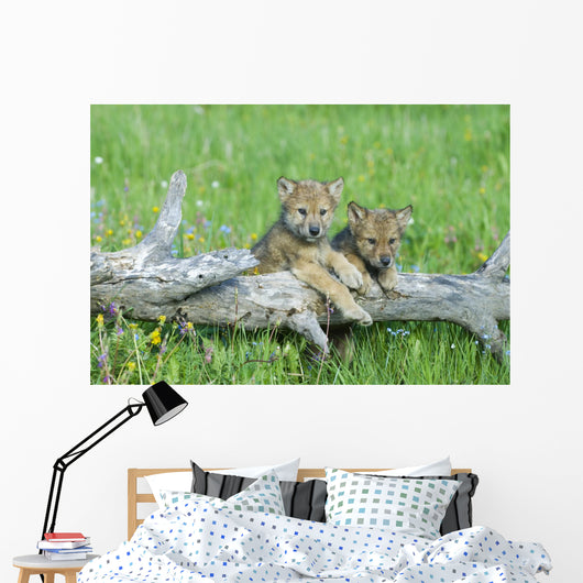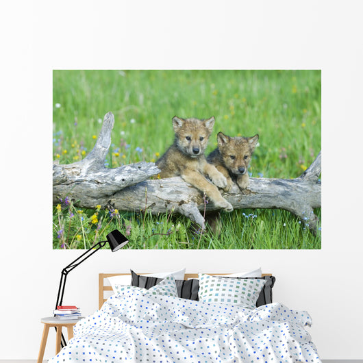 Playful Gray Wolf Cubs Wall Mural