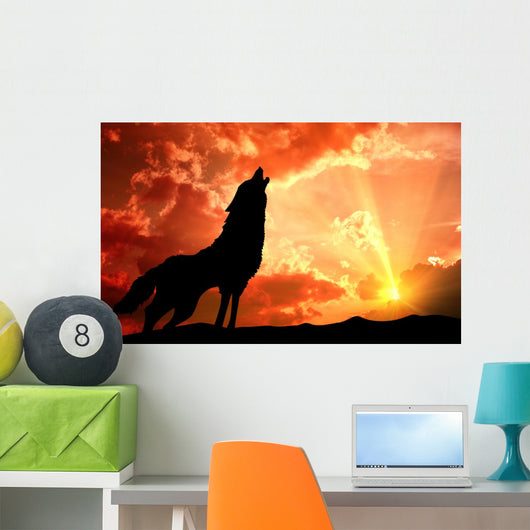 Lone Wolf Howling Sunset Wall Mural