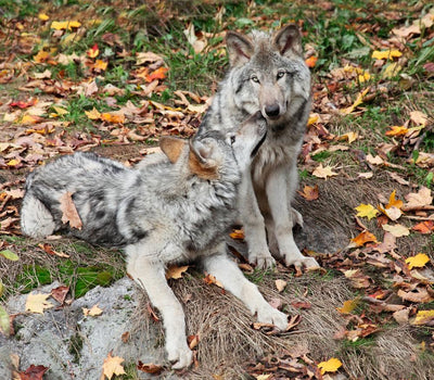 Two Gray Wolves Relaxing Wall Mural