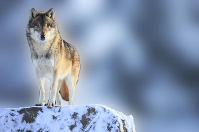 Gray Wolf Looking up Wall Mural