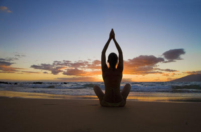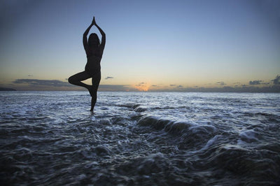 Woman Doing Yoga Ocean Wall Mural