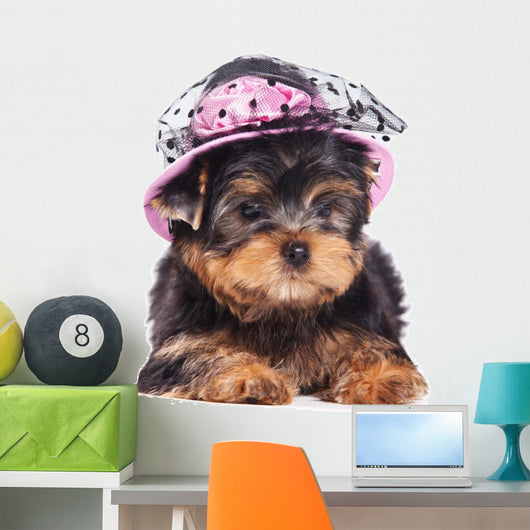 Yorkshire Terrier Puppy Wearing a Hat Wall Decal