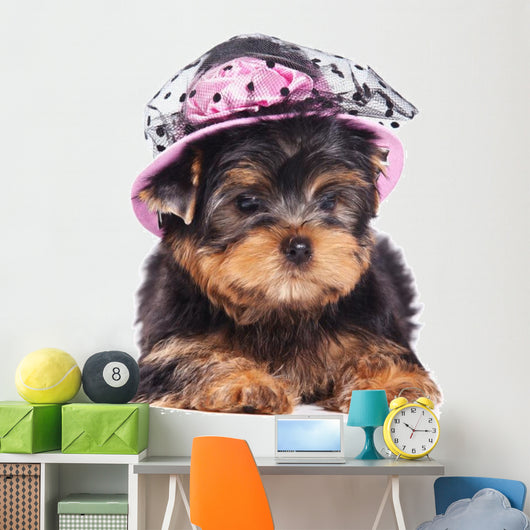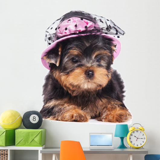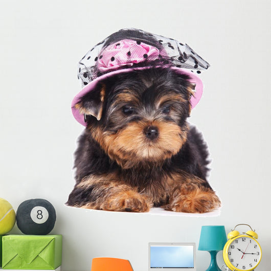 • Yorkshire Terrier Puppy Wearing a Hat Wall Decal