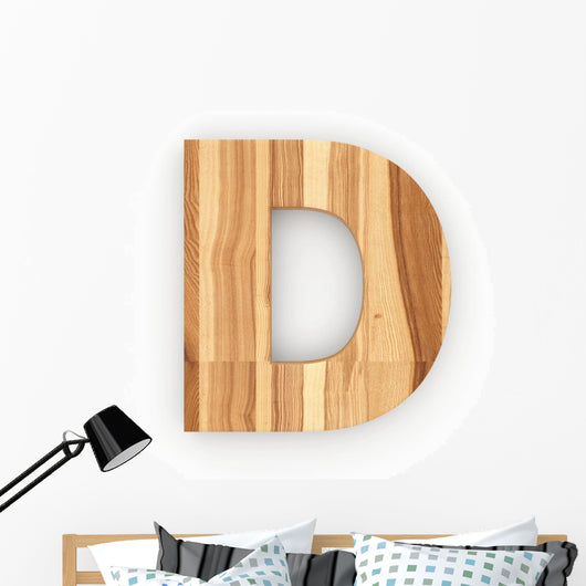3D "D" Font Ash Wood Wall Decal