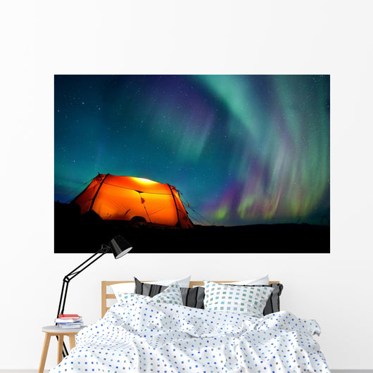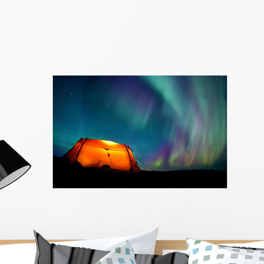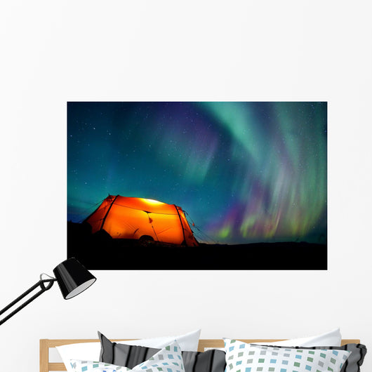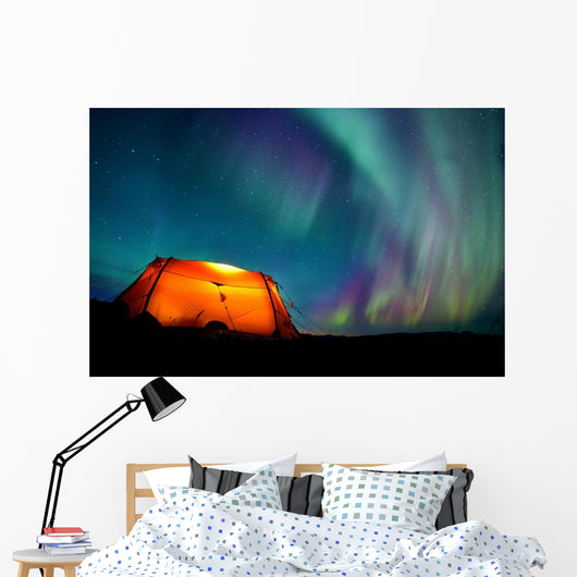 Tent and Northern Lights Wall Mural